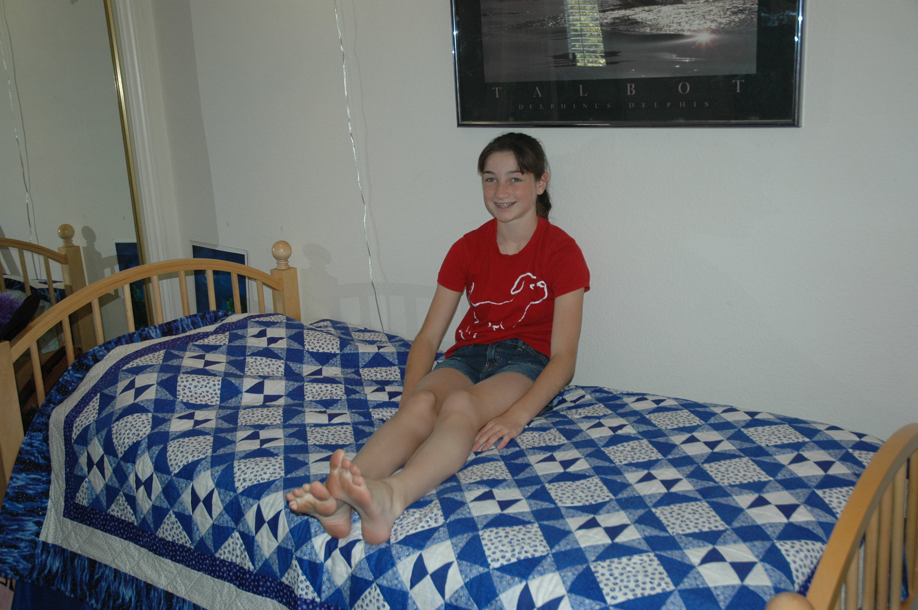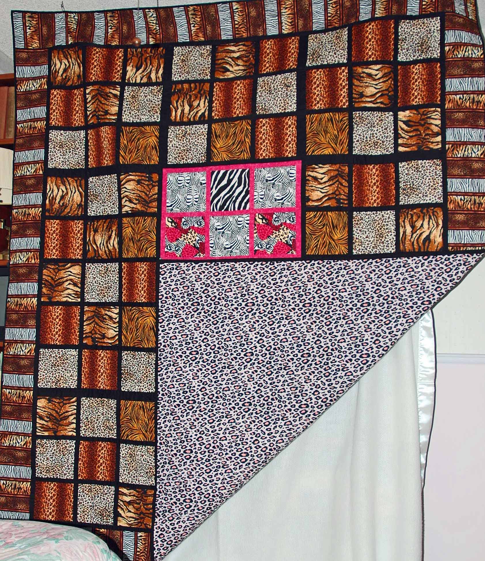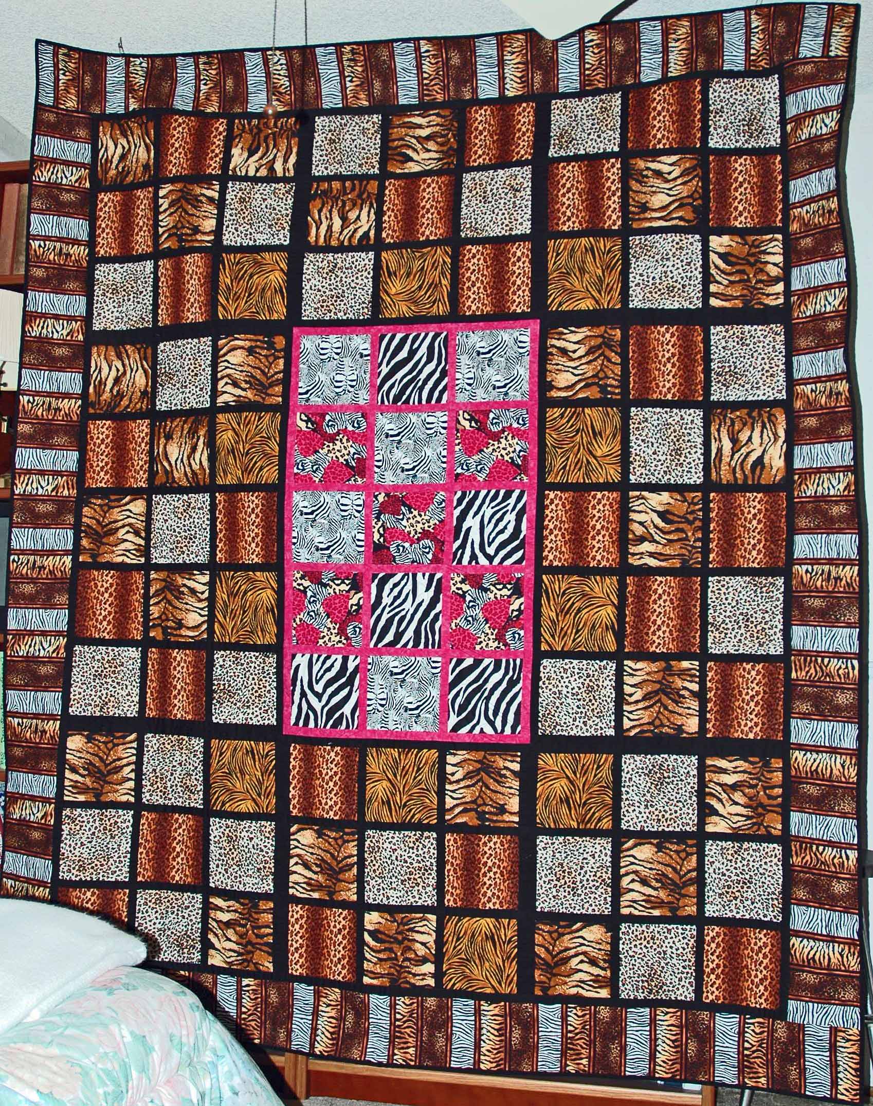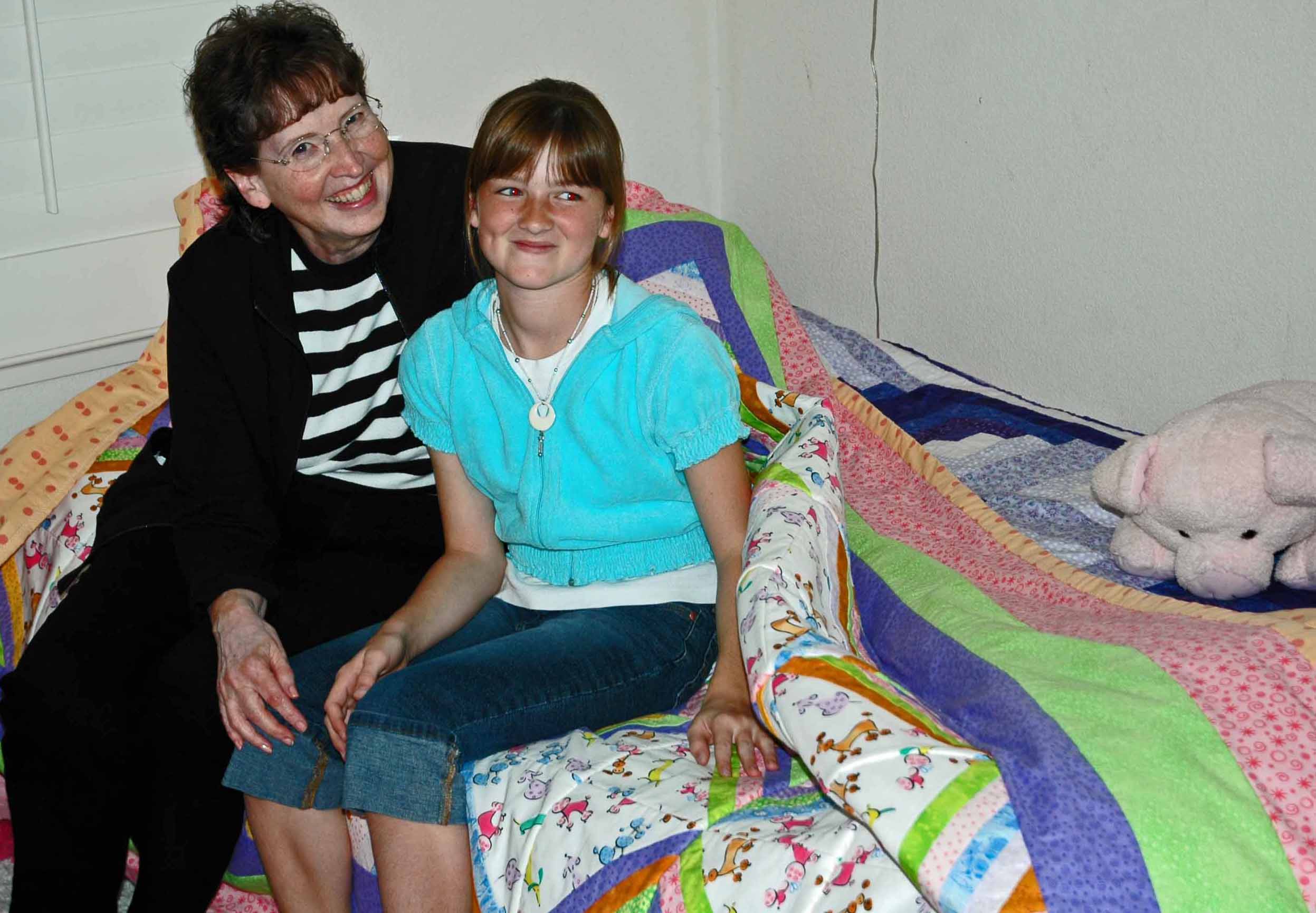 Rosalee has been enjoying the building of quilts for over a decade and for various people. This is a sample of the quilts that she has made, and these have all been given to her grandchildren. They are beautiful keepsakes. Others will be added as they are available (quilts not grandchildren). She cuts and 'pieces' the top of the quilt together and then sews it on her sewing machine. She usually has a lady with the proper machine put the quilt together (top side, filling, reverse side), and then Rosalee finishes up by putting the binding on by hand. In most of the images there is one image that shows her choice of fabric for the reverse. Fabric colors are usually chosen to match the recipients' colors of their rooms. |