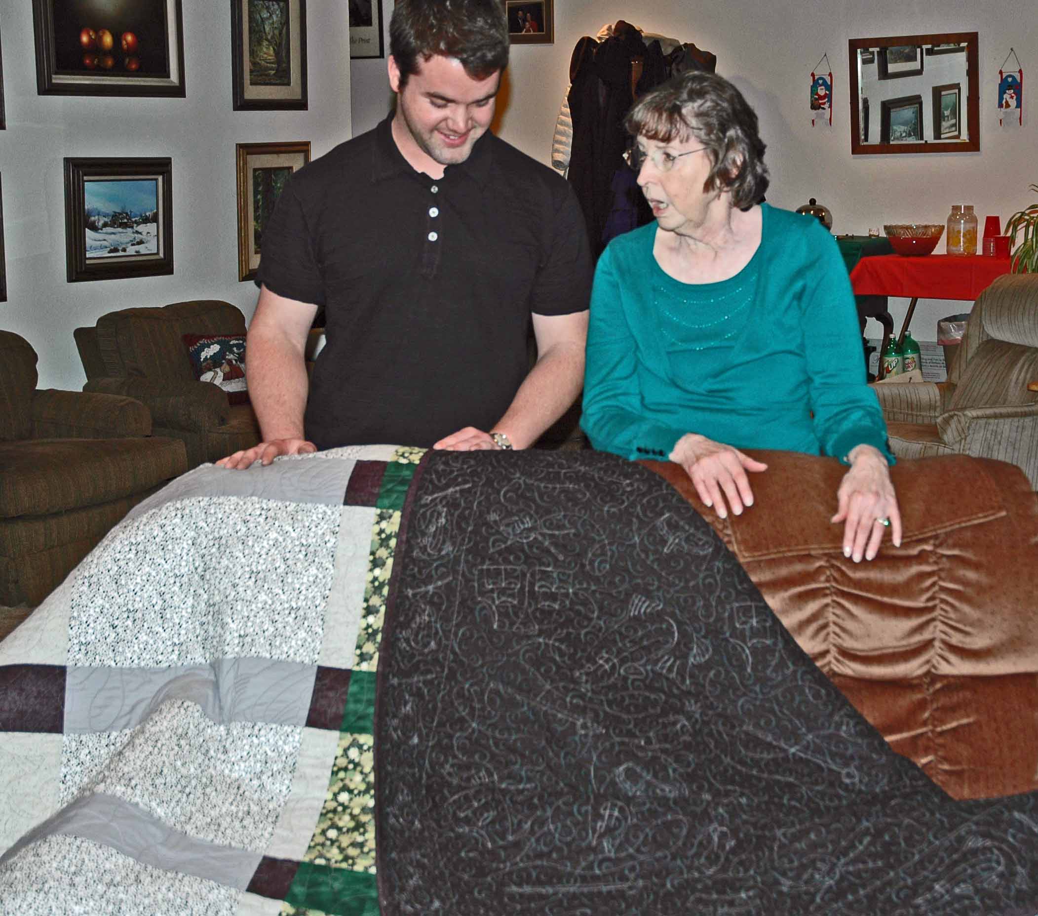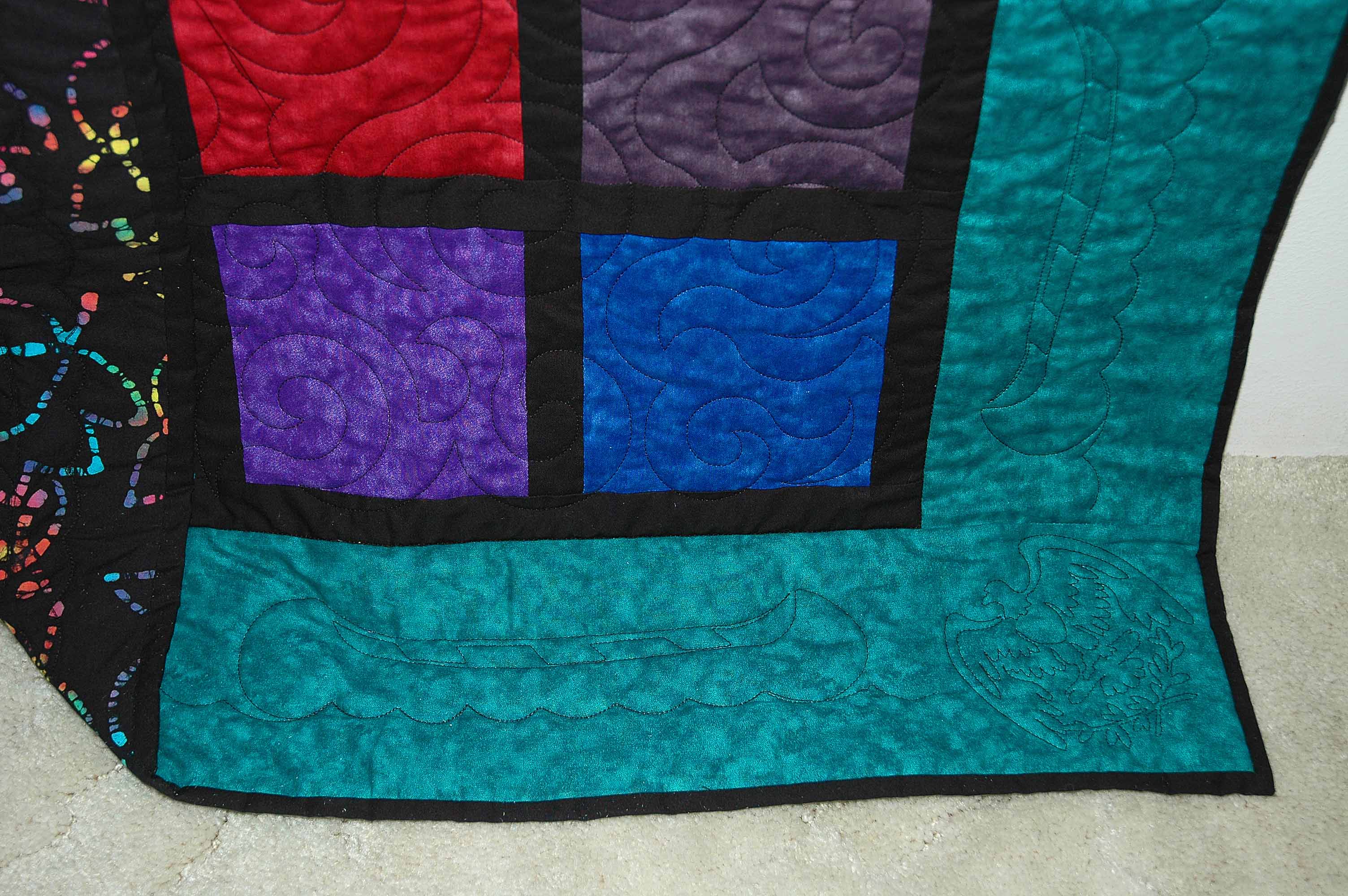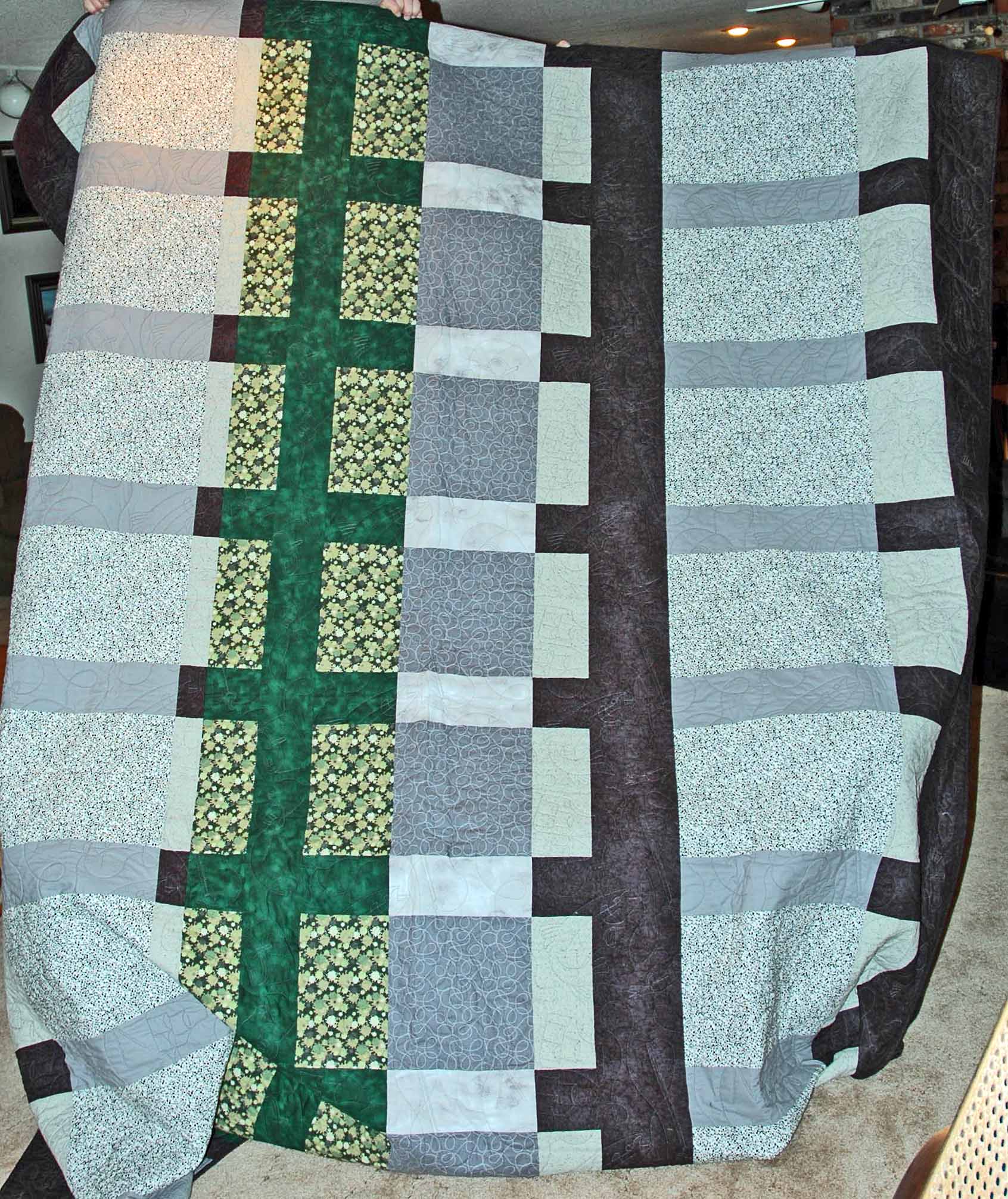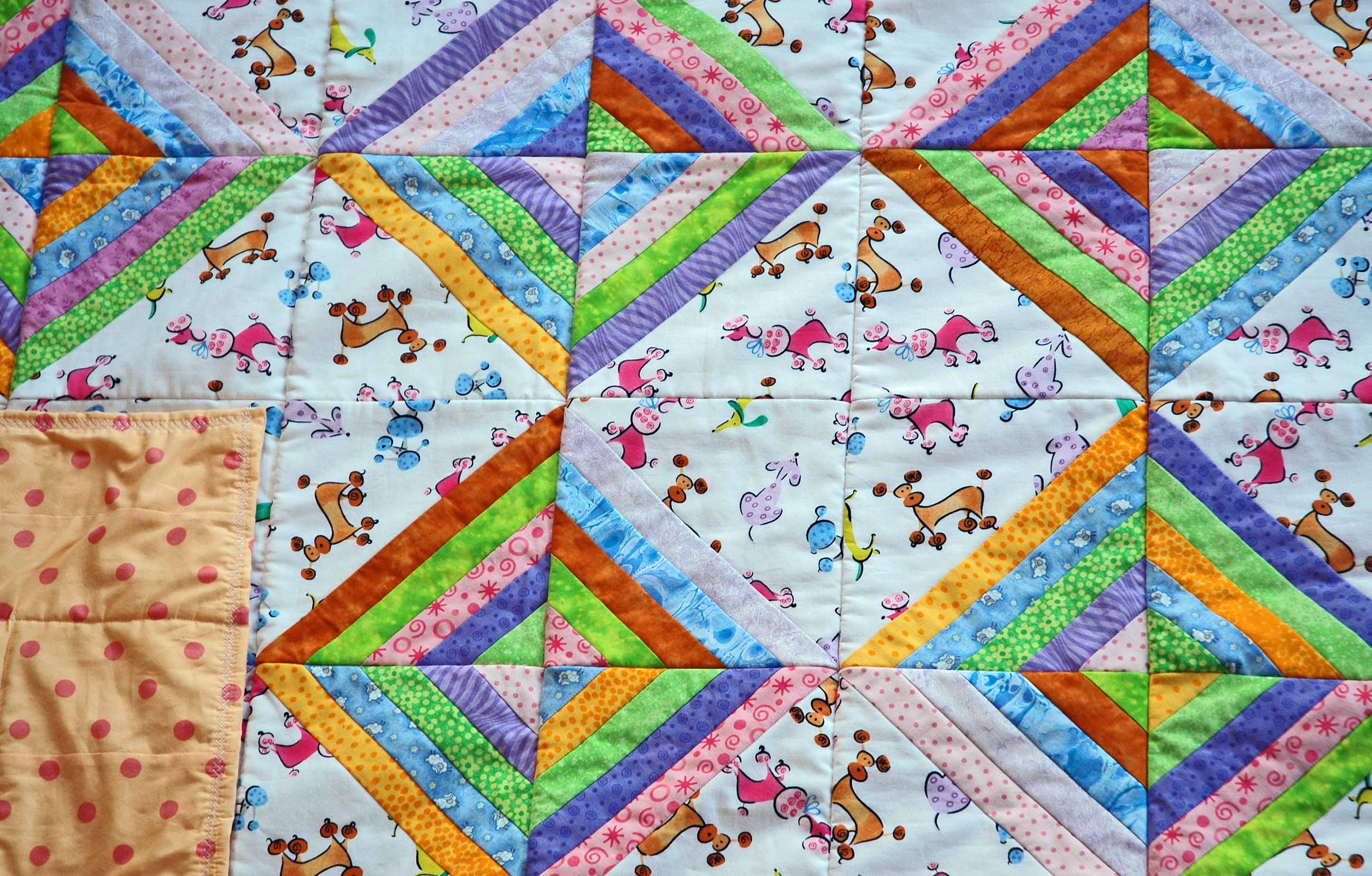 Rosalee has been enjoying the building of quilts for over a decade and for various people. This is a sample of the quilts that she has made, and these have all been given to her grandchildren. They are beautiful keepsakes. Others will be added as they are available (quilts not grandchildren). She cuts and 'pieces' the top of the quilt together and then sews it on her sewing machine. She usually has a lady with the proper machine put the quilt together (top side, filling, reverse side), and then Rosalee finishes up by putting the binding on by hand. In most of the images there is one image that shows her choice of fabric for the reverse. Fabric colors are usually chosen to match the recipients' colors of their rooms. |